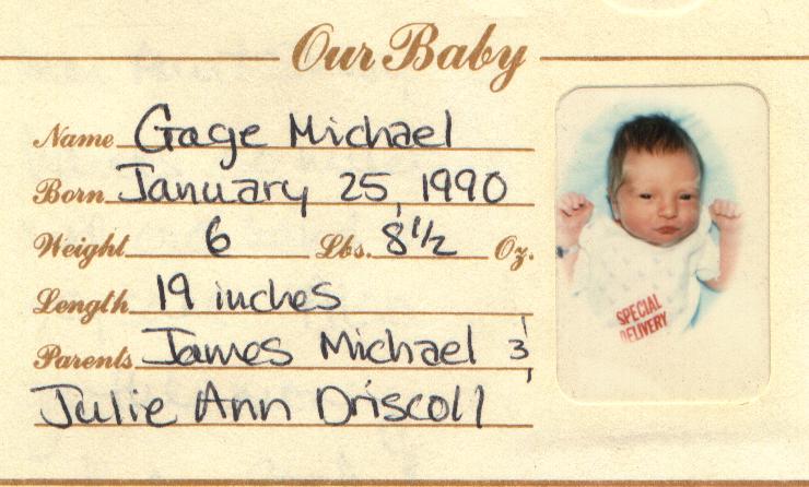 74 M i Gage Driscoll [image] was born Jan 1990.