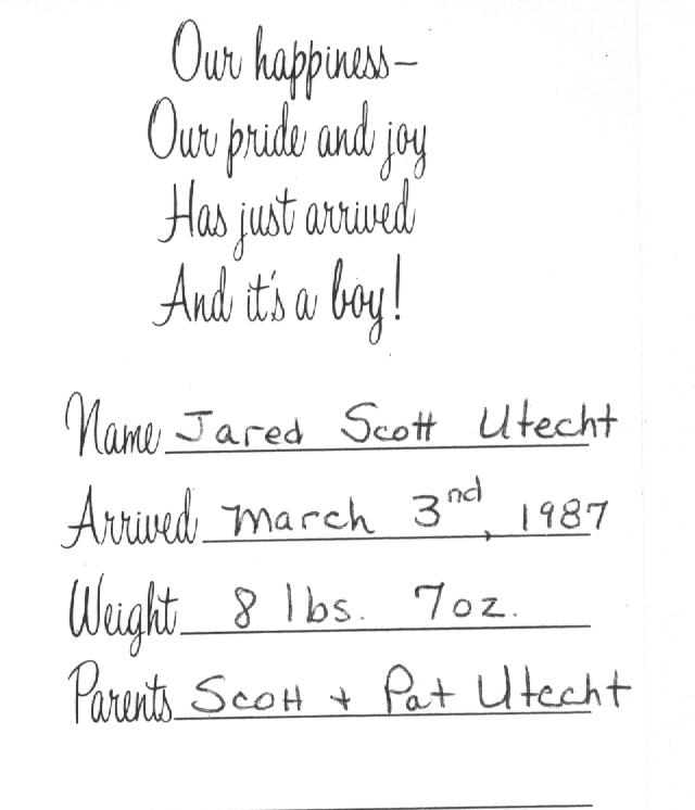 70 F i Amy Utecht [scrapbook] was born Oct 1978. 71 M ii Jared Utecht [image] was born Mar 3 1987.
