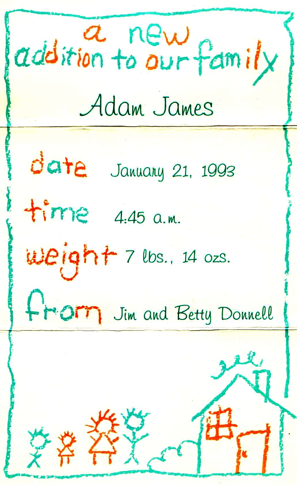 75 F i Emily Nicole Donnell [scrapbook] was born Apr 26 1990. 76 M ii Adam James Donnell [image] was born Jan 21 1993.
