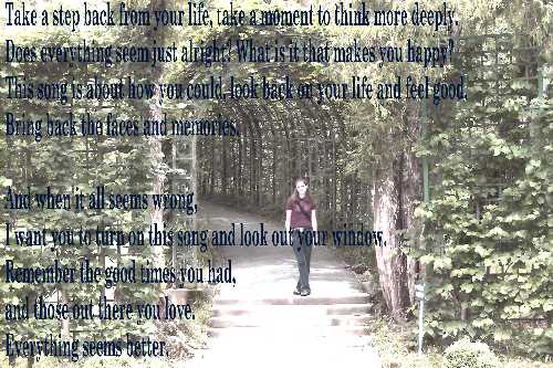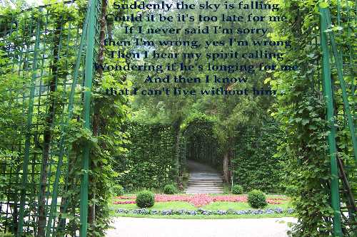 The same garden and place as the earlier picture, but this one is empty, and the lyrics are for someone that makes me think of that day. The song is Save Me by erm, Hanson. Not a good song but good lyrics, I changed the 'she' and the 'her' to he and him, just so you realize they weren't singing about a guy. It is too late for me.