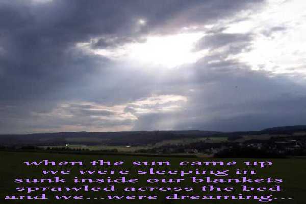 I had originally cropped this picture for Mike because he thought it was pretty cool, and I added the lyrics from the beginning of Existentialism on Prom Night by Straylight Run. The picture is just a random one I took on a walk we went on through Grosslitgen. It was beautiful.